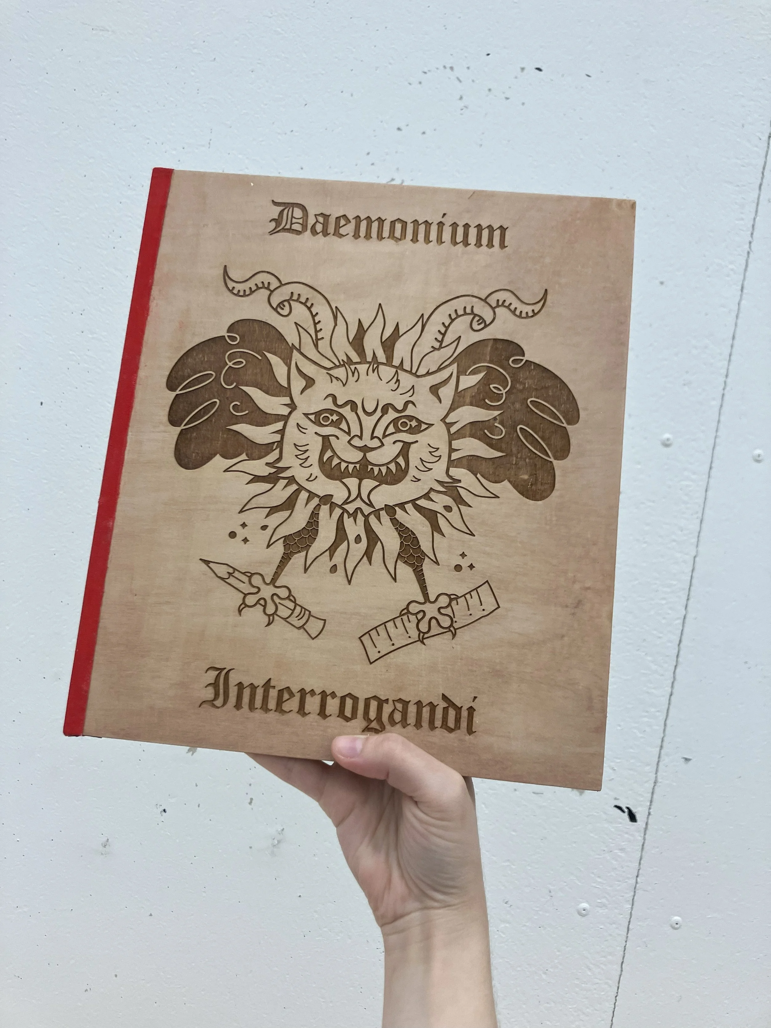 No doubt they were anticipating something modern, cutting-edge, and sleek. Instead, I successfully bewildered my classmates by creating Daemonium Interrogandi, a book inspired by medieval demonology compendiums and woodblock prints.