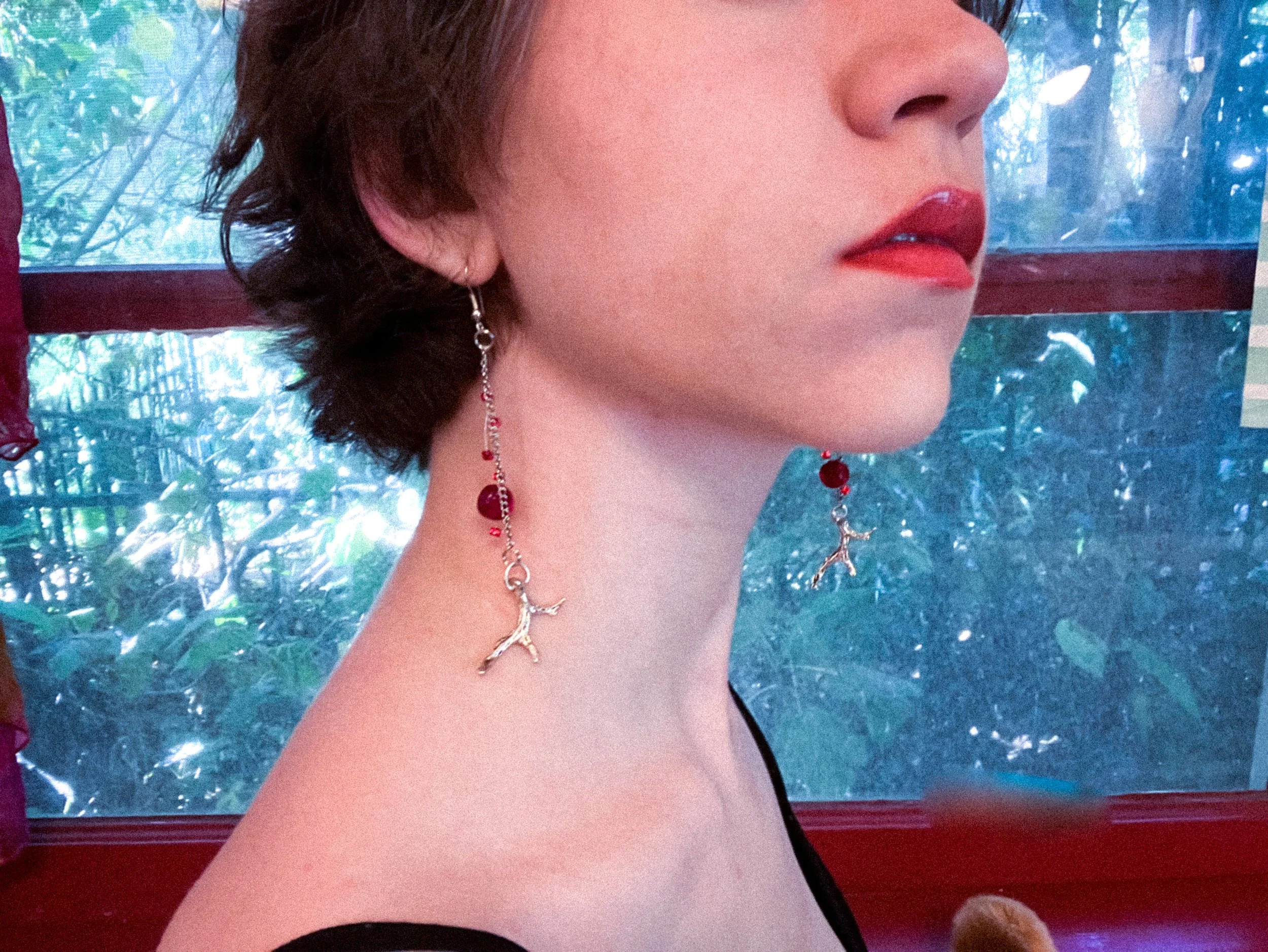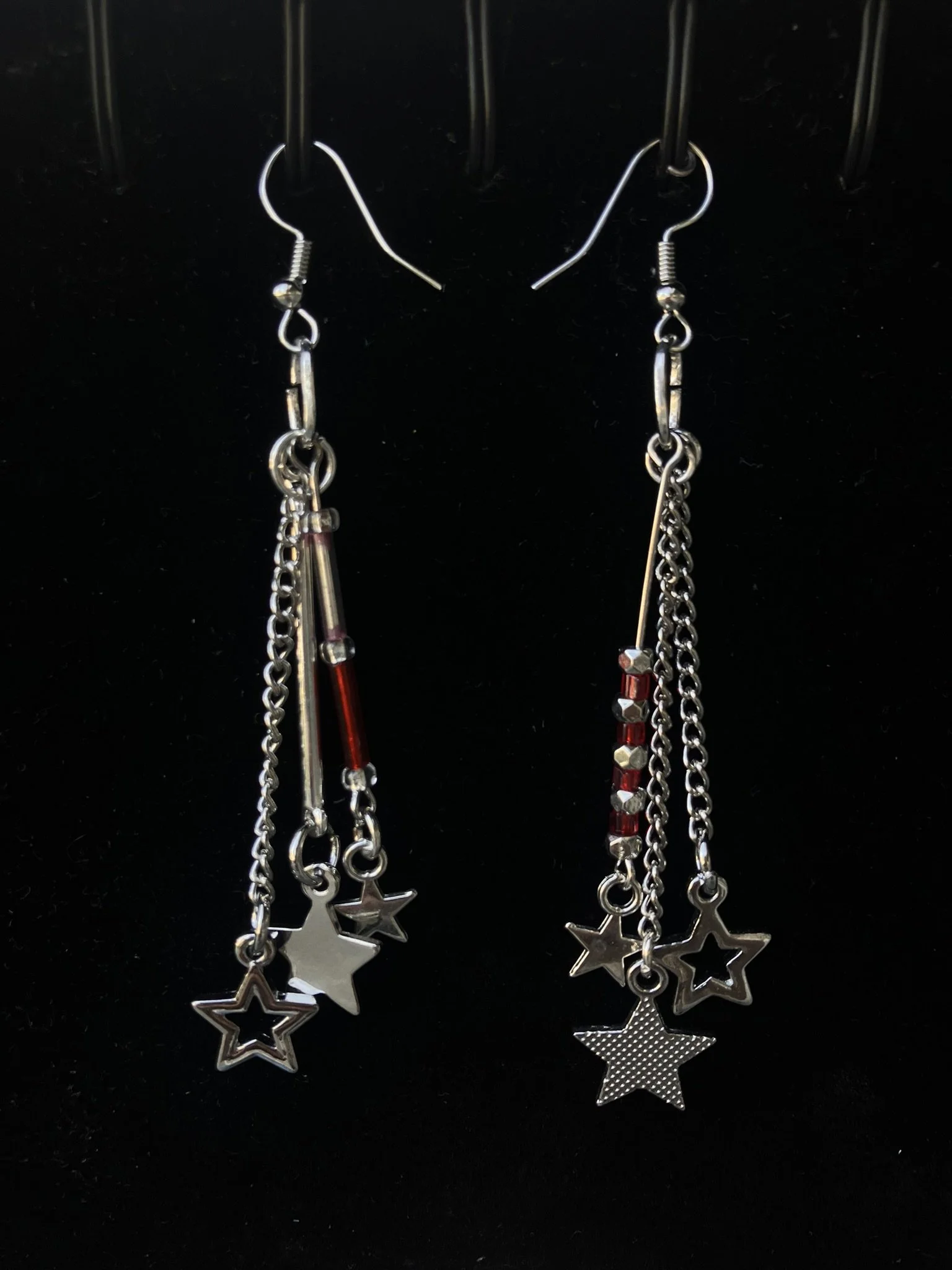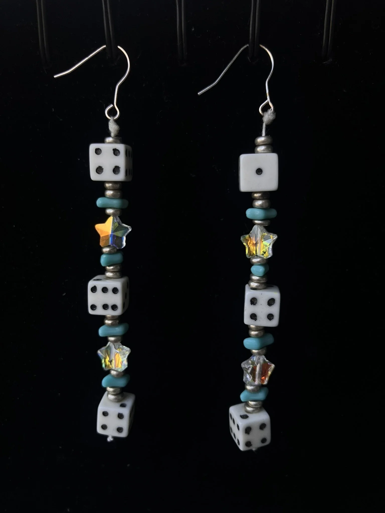 “They are fantastic. I couldn’t have conjured up a pair of earrings I would like more if I tried. Your son is a magician – the beautiful trailing stars, the night-blue elements sprinkled everywhere, the lovely variegated strands that add texture and interest, the fantastic length of them – they are absolutely perfect!” —Mimi, Boston